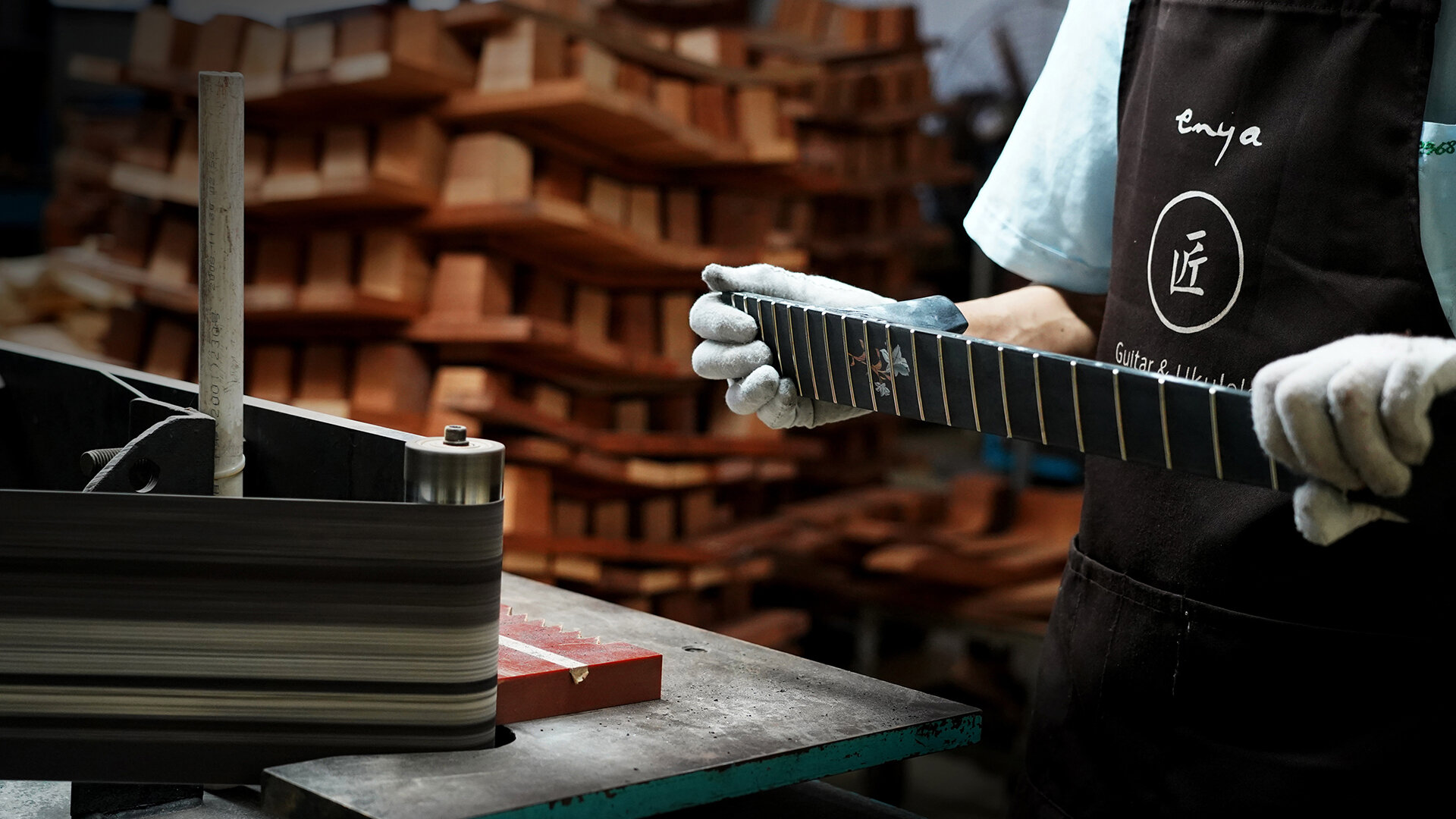 恩雅高端吉他生产线,无尘静音系统+恒温恒湿+15年自然风干材料储备 ;